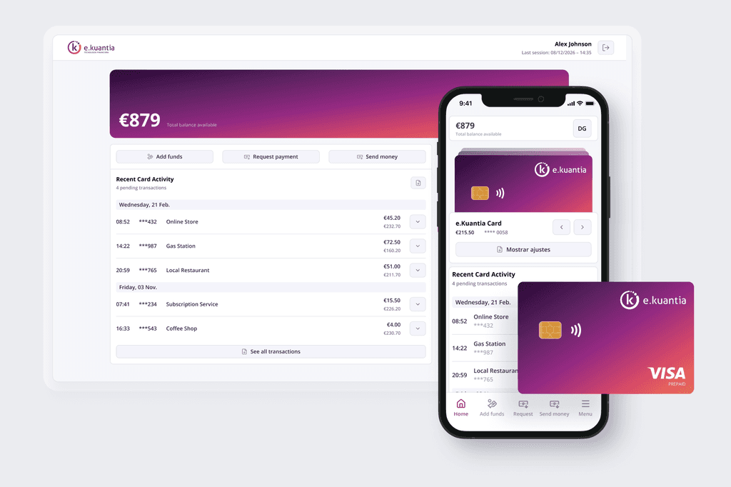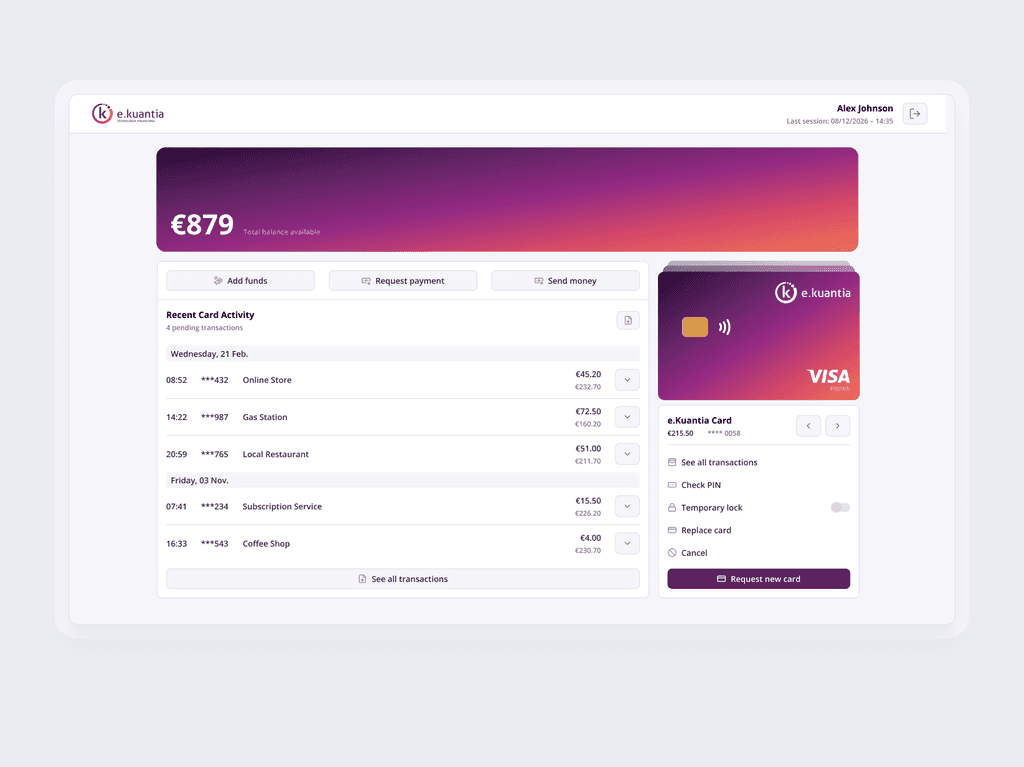 The core product — an online banking portal for managing balances, prepaid cards, and transfers. Every interaction had to pass strict audit requirements, so I built a modular structure that kept complexity hidden from the user while maintaining full regulatory transparency.